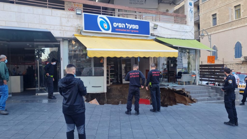 צפו: חנות קרסה לתוך חניון בירושלים • לא אותרו לכודים