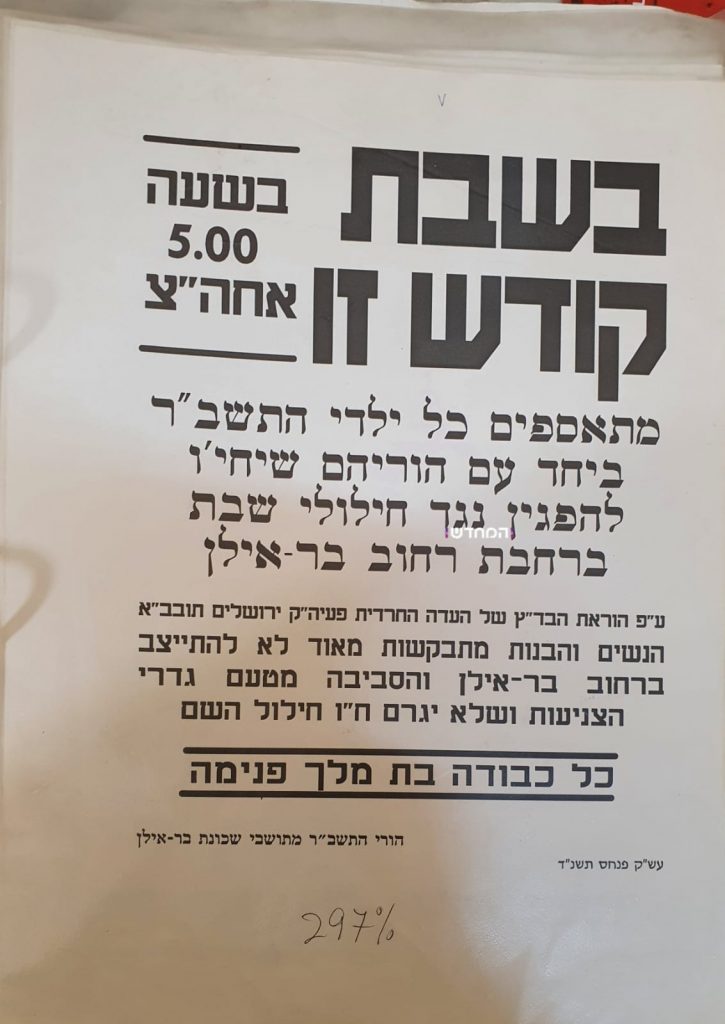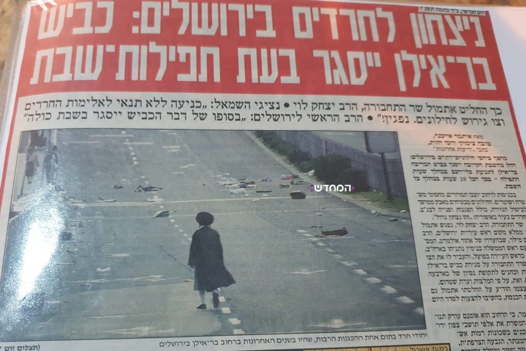 היתה זו ההפגנה החרדית הראשונה בהיסטוריית ההפגנות שלא הסתיימו עד היום, בכביש בר -אילן בירושלים.