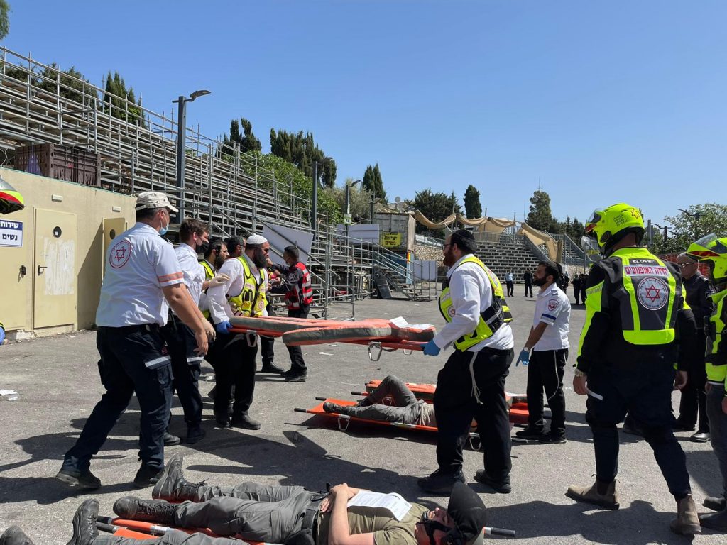 במסגרת התרגיל תורגל תרחשי של קריסת במת קהל ועשרות רבות של חוגגים נפצעו. "צוותי מד"א, אשר נמצאים בהר בכוחות גדולים העניקו טיפול רפואי לפצועים המדומים." הסביר פרמדיק מד"א עומרי הוכמן שהיה מפקד כוחות מד"א בתרגיל והוסיף "במסגרת התרגיל השתמשנו בטכנולוגיות מתקדמות שפותחו במגן דוד אדום ובכלים ייחודיים דוגמת משאית החפ"ק של מד"א, האוטובוס לטיפול נמרץ וטרקטורונים בעלי התקן מיוחד לחילוץ פצועים. אמבולנסים של מד"א פינו פצועים למנחת מסוקים סמוך על מנת לתרגל חבירה למסוק הצפוני של מד"א שנמצא גם כן בכוננות גבוהה."