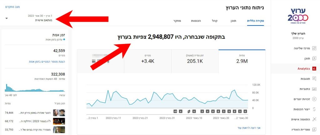 בחודשיים האחרונים בלבד, נמנו בפלטפורמות השונות של ערוץ 2000 מיליוני כניסות: כ- 3 מיליון צפיות בערוץ היוטוב, 4 מיליון צפיות בדף הפייסבוק של ערוץ 2000, ומיליון כניסות לאתר.