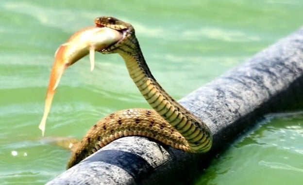 פקח רשות הטבע והגנים, שי קבסה, הצליח לתעד בסוף השבוע האחרון נחש מים משובץ שצד דג זהב בבריכה בצפון הארץ. קבסה סיפר: "הגעתי לאזור בשל קינון של טבלן גמדי שחי במים. זיהיתי שהנחש מגיע אל הקן, אבל לא ידעתי האם הוא ניזון גם מהטבלן וראיתי שההורה תקף את הנחש כשהוא התקרב לקן הגוזלים. התרגשתי מאוד מהרגע של התקיפה".