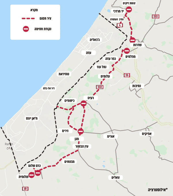 כאמור, האזורים והצירים שייחסמו הינם כלל צירי הגישה החקלאיים מערבית לכביש 232. בנוסף, ייסגרו גם הצירים הבאים לשני הכיוונים: