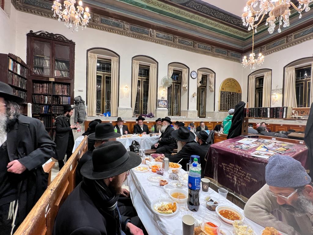 התקיימה ב"בעל התניא שול", שבשוק מאה שערים בהשתתפות משפיע בית הכנסת הרב "עידו ובר" התוועדות י' שבט.
