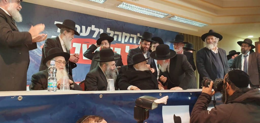 יו"ר דגל התורה ח"כ משה גפני בכינוס האדיר בצפת בנוכחות רשכבה"ג מרן שר התורה רבי חיים קניבסקי שליט"א: