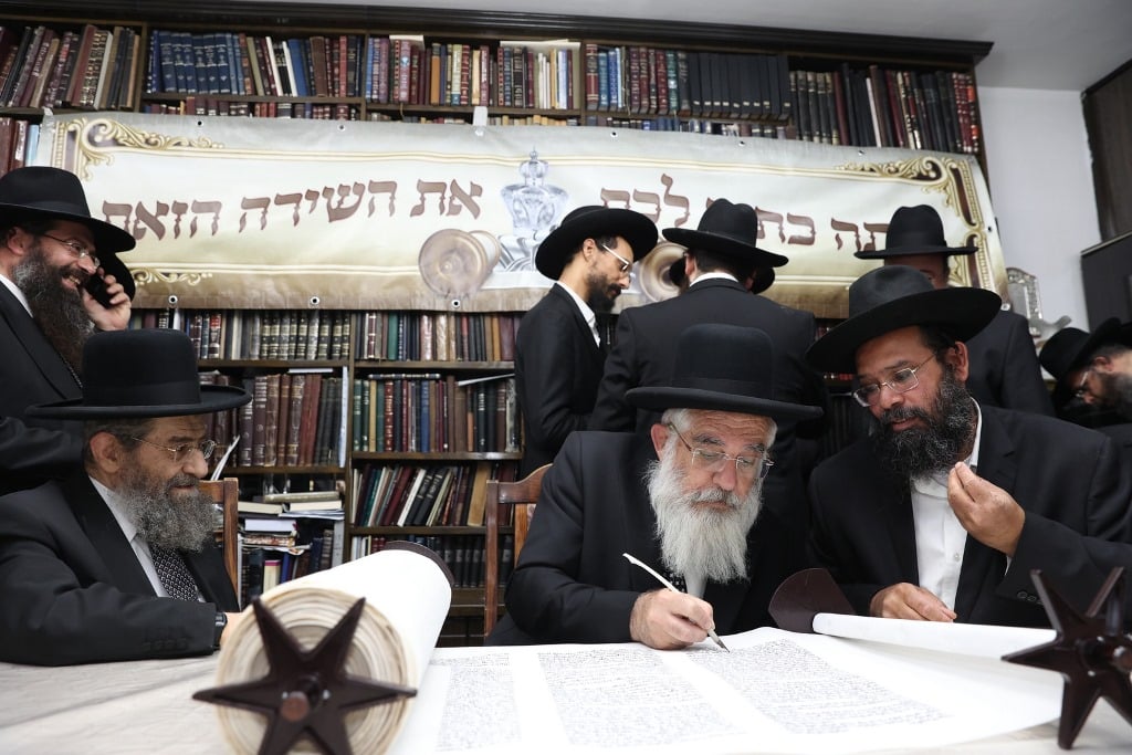 תחילה נערך מעמד כתיבת האותיות במעונו של המרא דאתרא ולאחמ"כ יצאה התהלוכה ברוב פאר והדר והמון חוגג לעבר בנין הישיבה.
