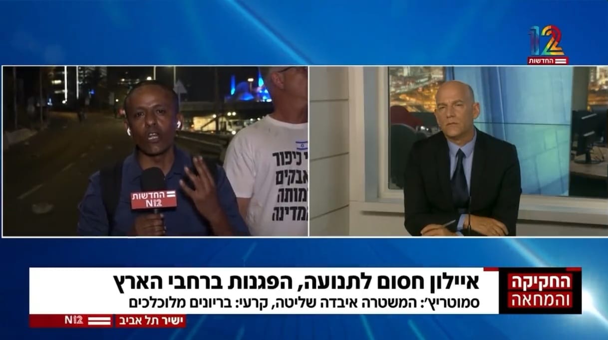 הכתב לענייני משטרה של חדשות 12 הוכיח את פרשן הערוץ שטען כי המשטרה התנהגה בצורה מכילה בהפגנה הערב בגלל חוסר האלימות של המוחים • צפו במונולוג המלא
