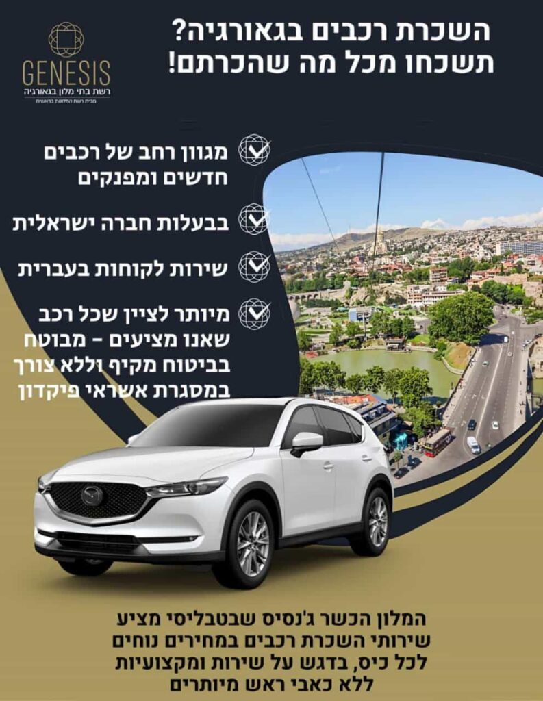 שכירת רכב בחברת ג'נסיס רכבים בגאורגיה מציעה מספר יתרונות וסיבות למה זה מומלץ: