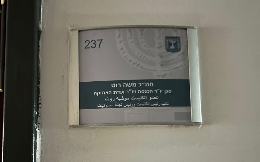 איצקוביץ׳ שהסתובב השבוע במסדרונות הכנסת, הבחין בשילוט החדש מחוץ ללשכתו של יו״ר וועדת האתיקה החדש.