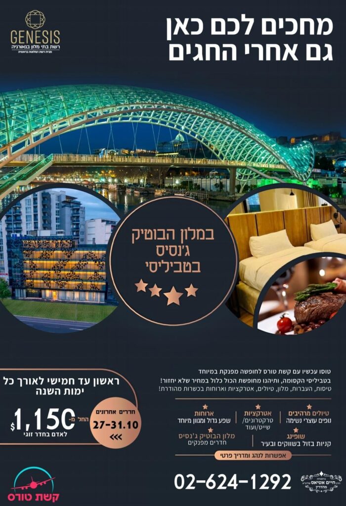 מלון ג'נסיס בטביליסי מציע חבילת נופש הכל כלול חדרים אחרונים בתאריך 27-31.10 (ראשון עד חמישי), מייד אחרי החגים.
