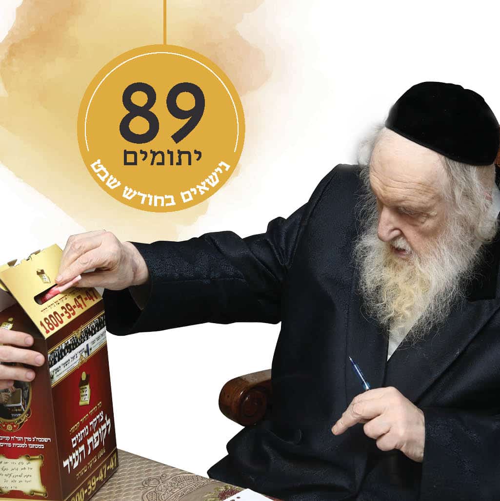 מרן מציין כי בחודש שבט צפויות להתקיים בסייעתא דשמיא 89 חתונות של יתומים ויתומות הזקוקים לעזרה כלכלית כדי שיוכלו להתחתן בכבוד, ומבטיח: "וכדאי הוא זכות המצווה הגדולה להשיא יתומים ויתומות לעורר רחמי שמים על כל הנותנים שיזכו לראות ישועת ה', ונאמן הוא אבינו שבשמים שישלם שכר רב למי שמרחם על בניו, וכל המוסיף בנתינתו יוסיפו לו ברכה מן השמים, והנני מבקש מכל אחד להצטרף".