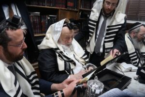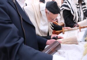 08:50 | מרן ראש הישיבה הגרב"ד פוברסקי הבוקר בקריאת המגילה ▪︎ צילום: שוקי לרר