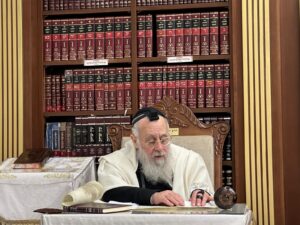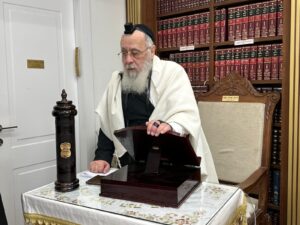 הגר”מ בן שמעון בקריאת המגילה בבית מדרשו