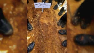 הרב יוסף אלנקווה רבה של גוש קטיף תקע בשופר לפני כניסת המיטה לבית העלמיןץ