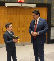 השגריר דנון מארח במועצת הביטחון של האו״ם את בן קרסו, משיא המשואה הצעיר ביותר.