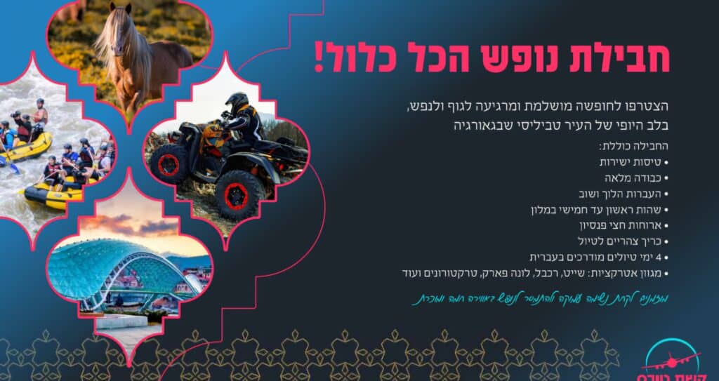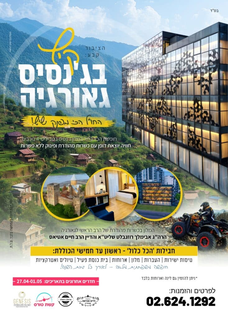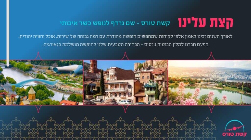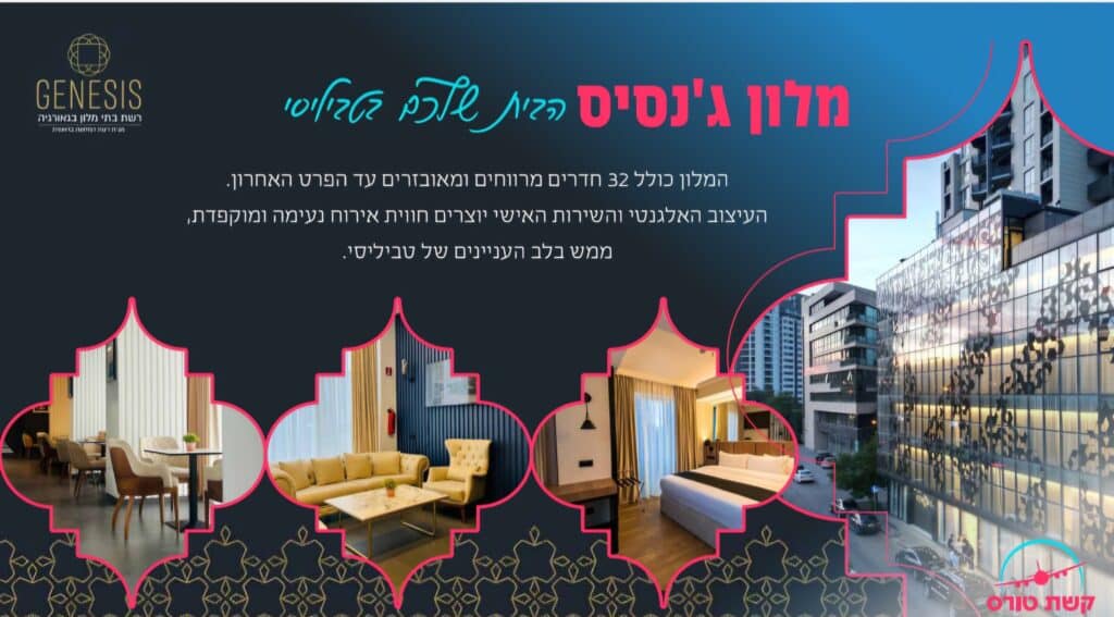 הקיץ הזה, הצטרפו לתוכנית הקיץ החדשה והמעודכנת של מלון ג’נסיס בטביליסי, בשיתוף קשת טורס – חוויה יהודית של נופש, טיולים, אוכל ושירות מהשורה הראשונה.