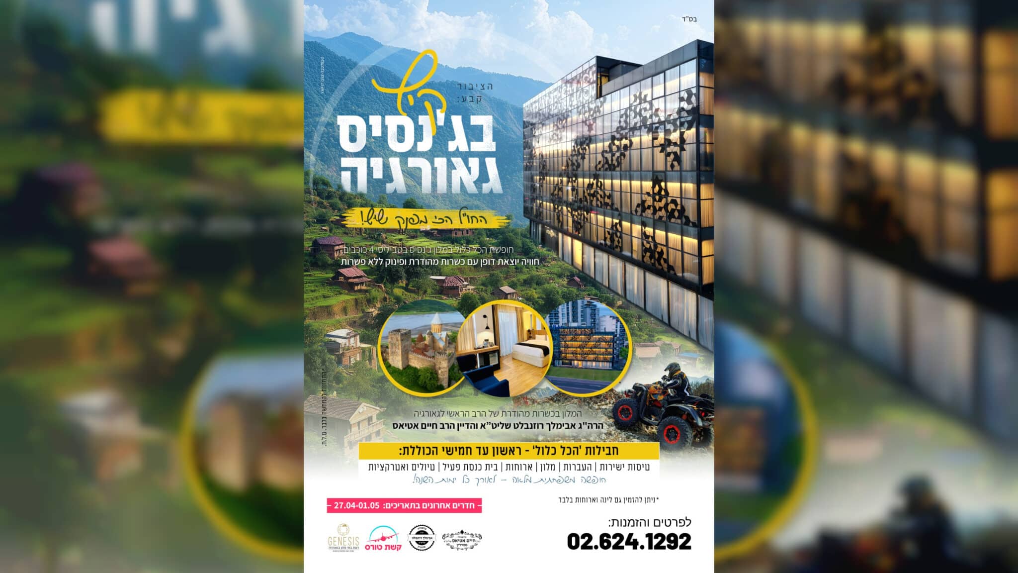 הקיץ הזה, הצטרפו לתוכנית הקיץ החדשה והמעודכנת של מלון ג’נסיס בטביליסי, בשיתוף קשת טורס – חוויה יהודית של נופש, טיולים, אוכל ושירות מהשורה הראשונה.