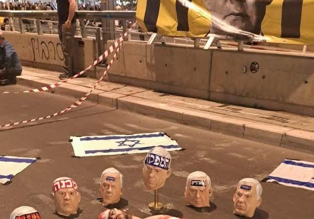 בהפגנת השמאל שנערכה כמידי מוצ"ש, הציגו כמה מהמפגינים מיצג מזעזע ובו נראים ראשים כרותים של ראש הממשלה בנימין נתניהו, כשבשמאל שותקים ולא מגנים זאת.