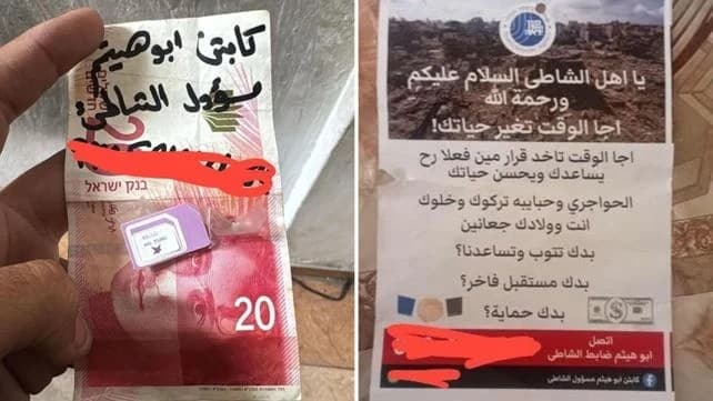 אחת השיטות הבולטות שדווחו היא הפצת שטרות כסף ישראליים בעלי ערך נקוב של 20 שקלים חדשים באזורים שונים ברצועה. על פי המקורות, על גבי השטרות נרשם מסר ייחודי: "קפטן אבו הית'ם, האחראי על מ.פ. שאטי", בליווי מספר טלפון המיועד ליצירת קשר עם איש שב"כ המוצג כאחראי על אזור מחנה הפליטים שאטי.