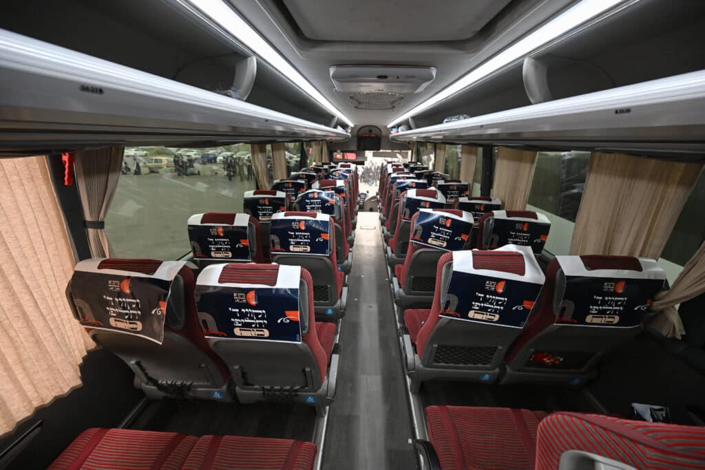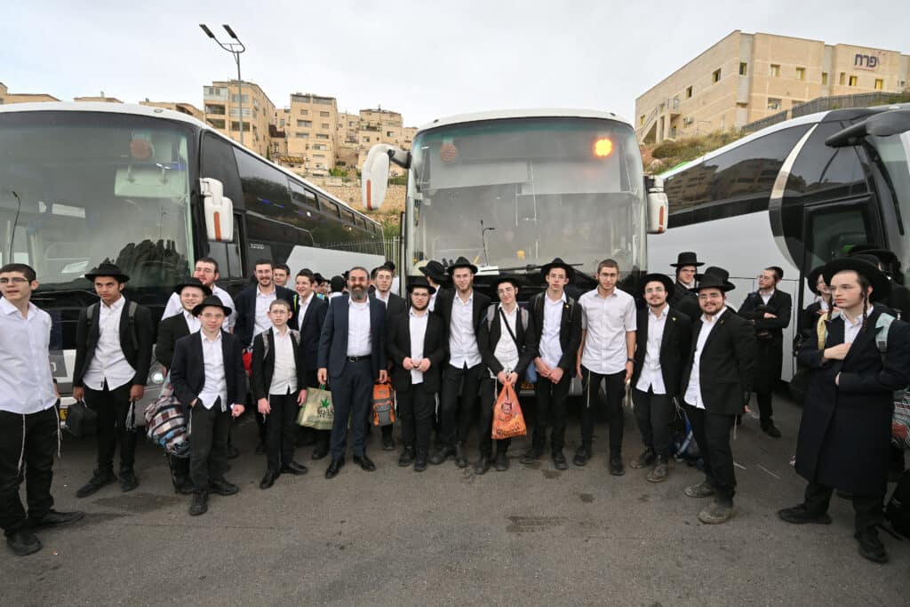 היה זה 'טרמינל' של ממש, עם לא פחות מתשעים אוטובוסים שהיו מסודרים זה לצד זה בסדר מופתי, כאשר על חזיתו של כל אוטובוס תלוי שלט המכיל את שמה של הקהילה שנוסעת באוטובוס זה. קהילות גדולות קיבלו כמה אוטובוסים, וקהילות קטנות יותר קיבלו אוטובוס אחד, והצד השווה שבהם – שהנסיעה עצמה הייתה חלק מהחוויה. ליד כל מושב המתין לבחורים שקית ממותגת של 'מיט א ברע'ן' שהכילו כל טוב, לקראת נסיעה חווייתית ומרוממת כיאה לעמלי התורה בקדושה ובטהרה.