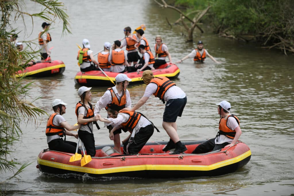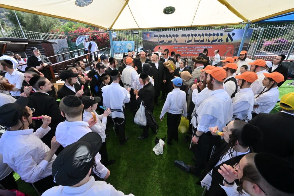 המתחמים שהוכנו מבעוד מועד ונשאו שלטים המדרבנים ומעודדים את הבחורים על הישגיהם בלימוד התורה ומברכים אותם בברכת 'א געזונטער זומער' – הפכו במשך יום ההתרעננות למוקד של צבירת כוחות באווירה עילאית קדושה ומרוממת.