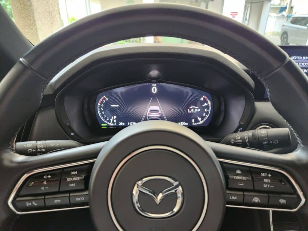 לאחר מכן, המשכתי לנסיעה במרכז העיר הצפוף. כאן, ה-CX-90 הפגינה צדדים אחרים. למרות ממדיה הנדיבים, היא התנהלה בצורה מפתיעה וזריזה בפקקים. חיישני החניה והמצלמות ההיקפיות הקלו מאוד על התמרון במקומות חניה צרים. רמת הרעש בתא הנוסעים הייתה נמוכה באופן מרשים, מה שתרם לתחושת נינוחות גם בתוך ההמולה העירונית.