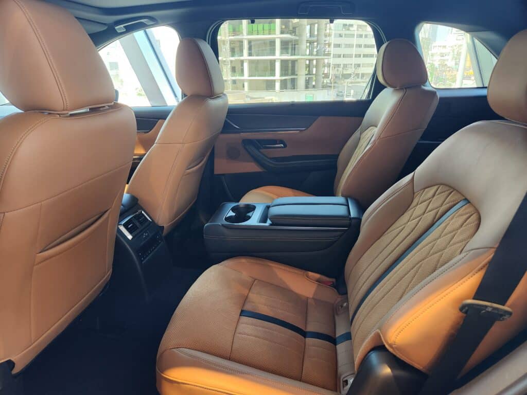 בנוסף, ניכר שמאזדה השקיעה מחשבה רבה בנוחות הכניסה לשורה האחרונה. בלחיצת כפתור דיגיטלית קטנה, המושב בשורה השנייה מתקפל בצורה חלקה וחשמלית, ומאפשר כניסה נוחה ללא התעמלות מיותרת – פרט קטן שמעיד על תשומת לב מעמיקה לצרכי המשתמש.