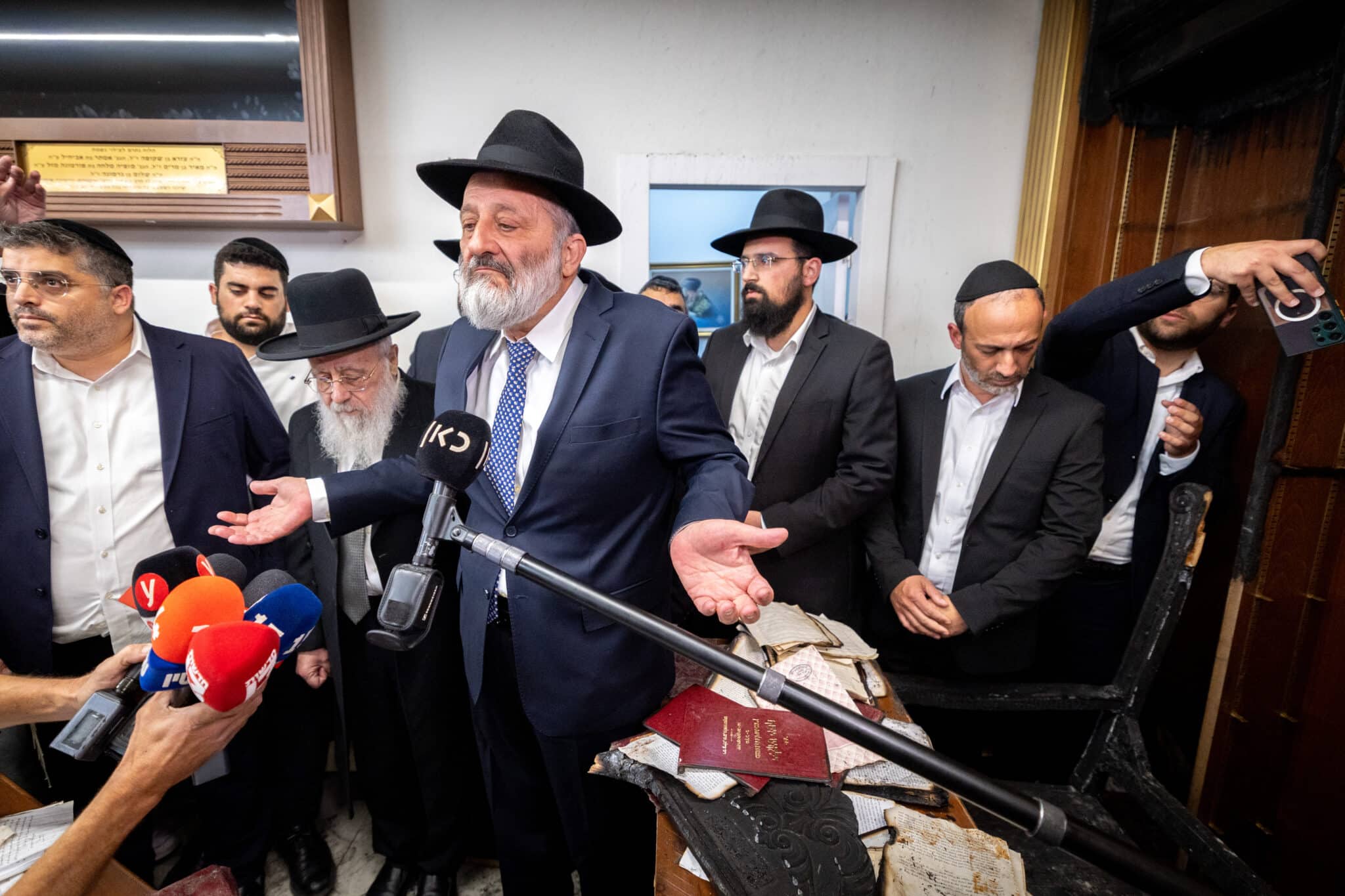 יו"ר ש״ס ח"כ אריה דרעי, הגיע היום יחד עם הראש"ל וחבר מועצת חכמי התורה הגר״י יוסף שליט״א, לבית הכנסת "אור חביב" בירושלים – שם בוצעה הלילה הצתה חמורה וניסיון לשריפת המקום הקדוש.