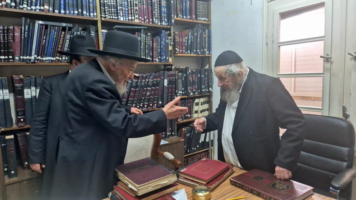 מרן ראש הישיבה הגרמ"ה הירש נכנס כעת למעונו של מרן ראש הישיבה הגר"ד לנדו לקבל ברכת "צאתכם לשלום" לקראת נסיעתו לארה״ב לטובת גיוס כספים עבור ישיבת סלבודקה.