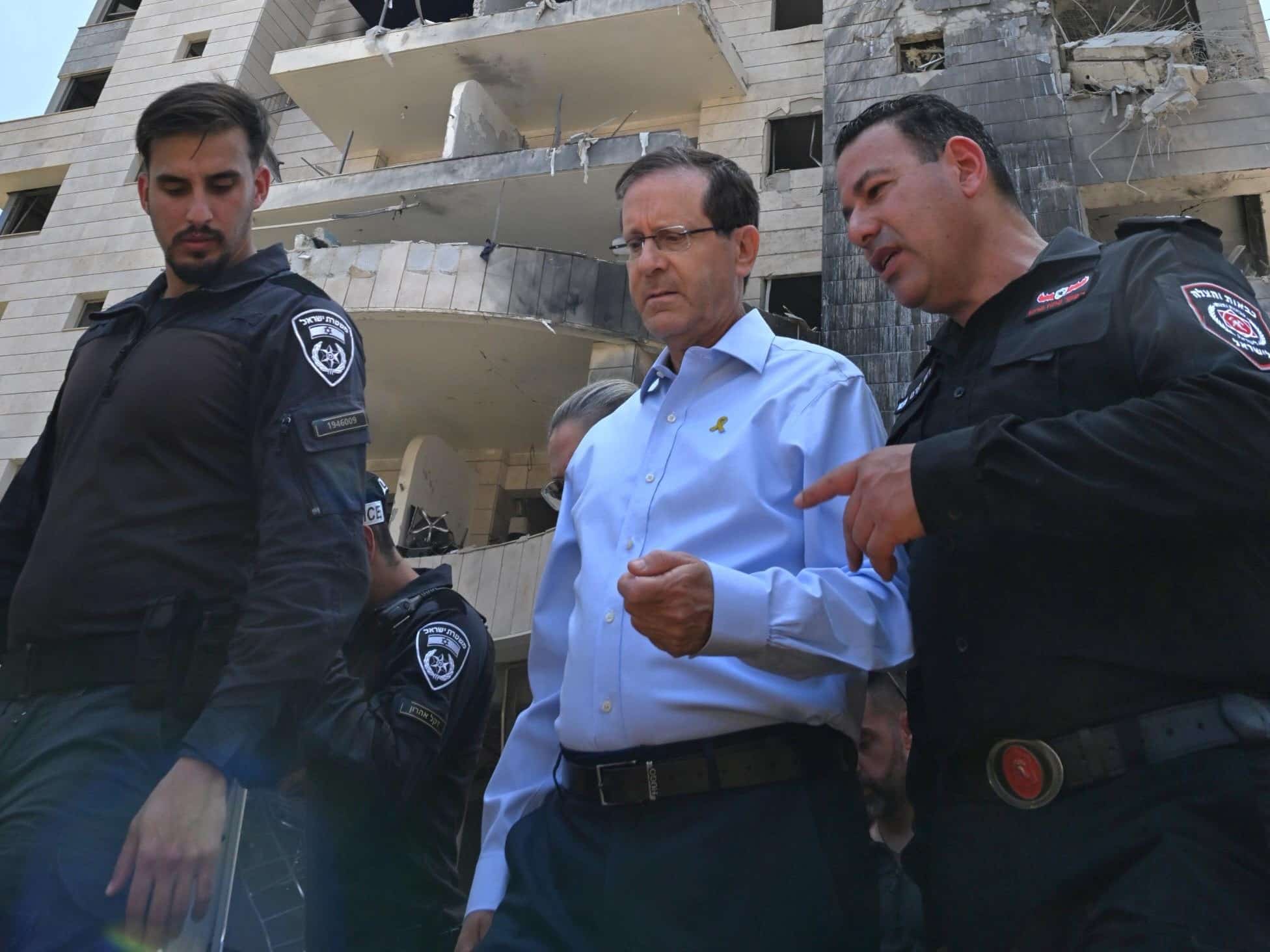 נשיא המדינה, יצחק הרצוג, הגיע היום (שני) לזירת נפילת הטיל האיראני בפתח תקווה, שם עמד מקרוב על ממדי ההרס. "מה שמיכל ואני ראינו עכשיו בדירה שנחרבה כולה זה הרשע בהתגלמותו", אמר הנשיא, והוסיף כי "טיל ששוגר מאיראן וכל מטרתו להרוג ישראלים".