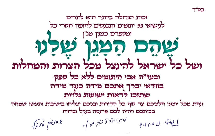 ובמעמד מיוחד, גדולי הדור התכנסו וקבעו: צדקה ליתומים אלו – היא ה'מגן' של עם ישראל בעת הזו.