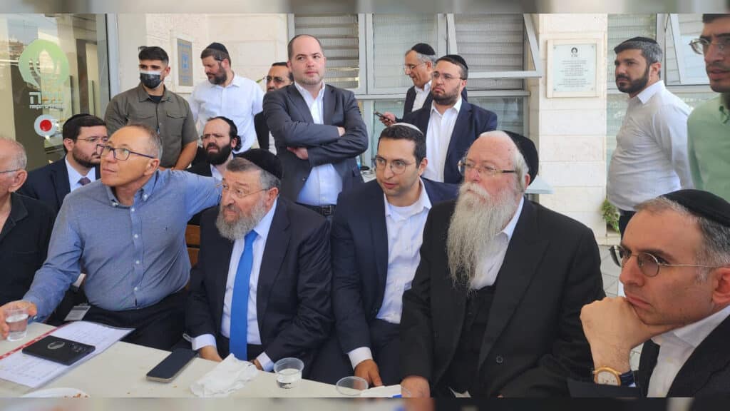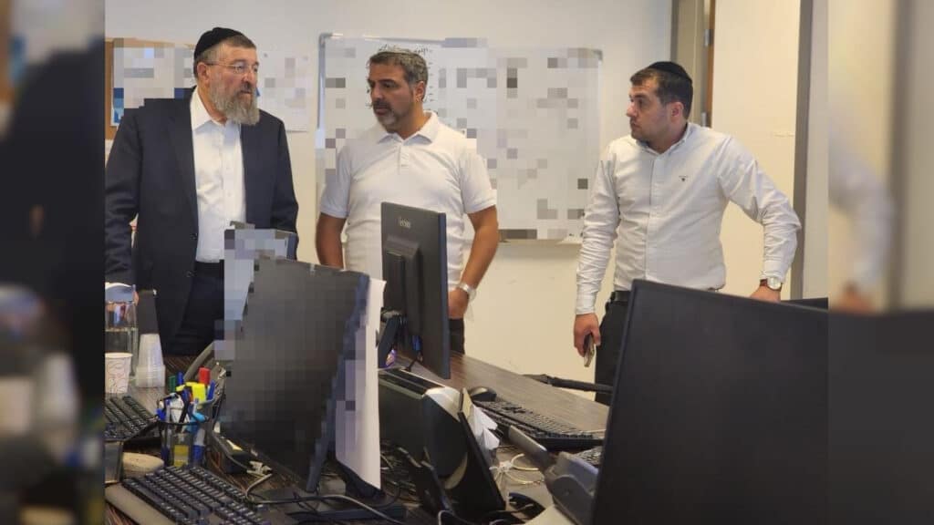 במיני ישיבת הממשלה בשטח הנפילה בבני ברק, איצקוביץ' הבחין מימין במנכ"ל הנמרץ של משרד העבודה ישראל אוזן. מתחבא מאחורי הקלעים: הסגן הבני ברקי, שלומי אלחרר. במרכז: השרים בן צור ווסרלאוף ועל גבם, יועץ התקשורת הבלתי נלאה, יענקי ביכלר.
