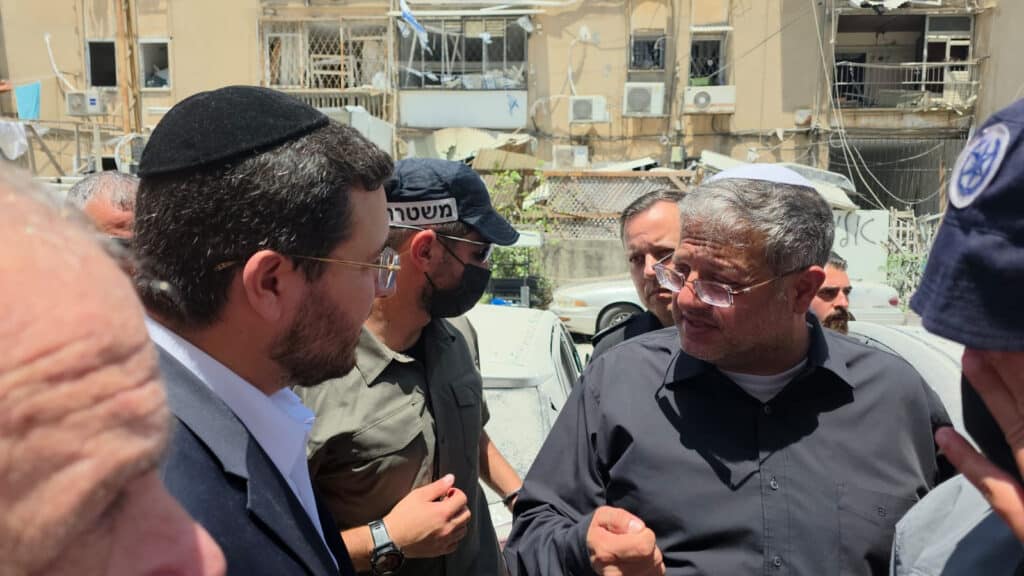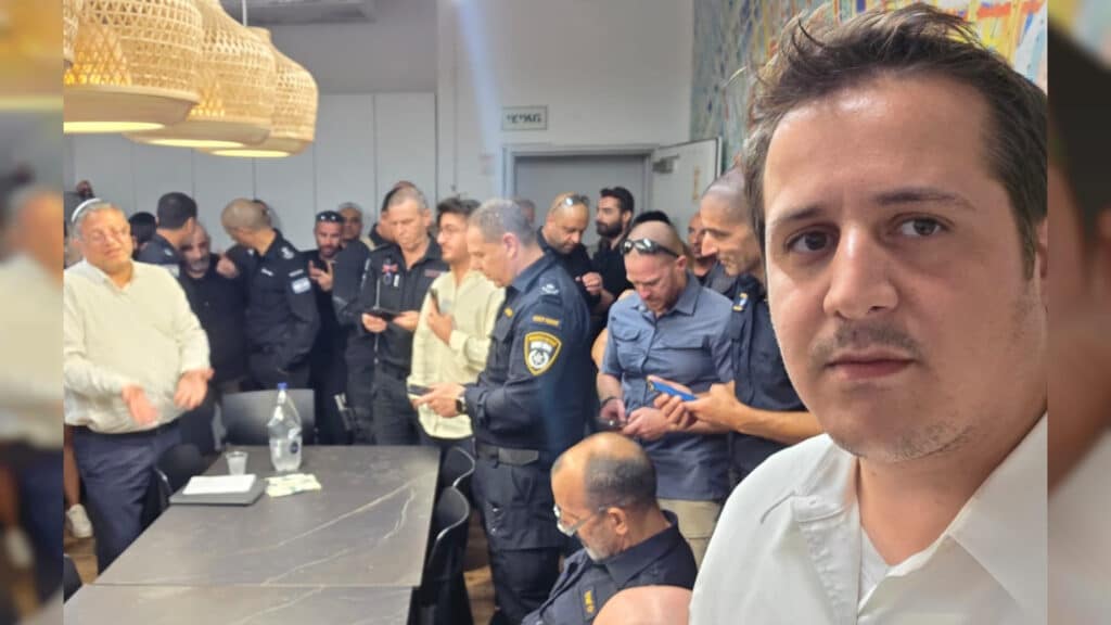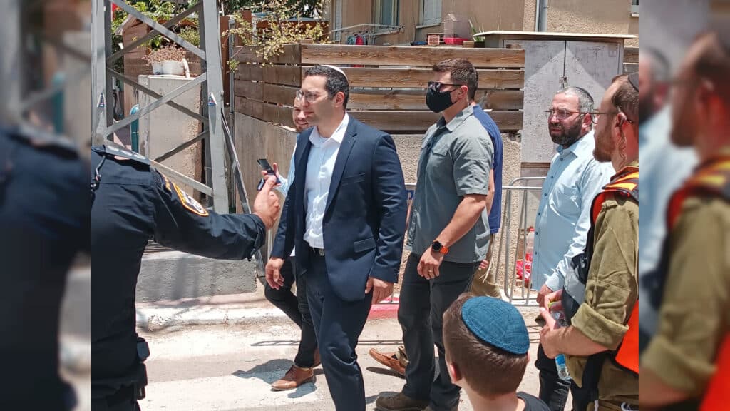 איצקוביץ' שהוקפץ לא אחת לזירת הנפילה בבני ברק, הצליח לתפוס לתמונה גם את השר לביטחון לאומי איתמר בן גביר והסגן הבני ברקי שלומי אלחרר. מאחורי הקלעים: אריאל אלחרר, היועץ של והאח של.