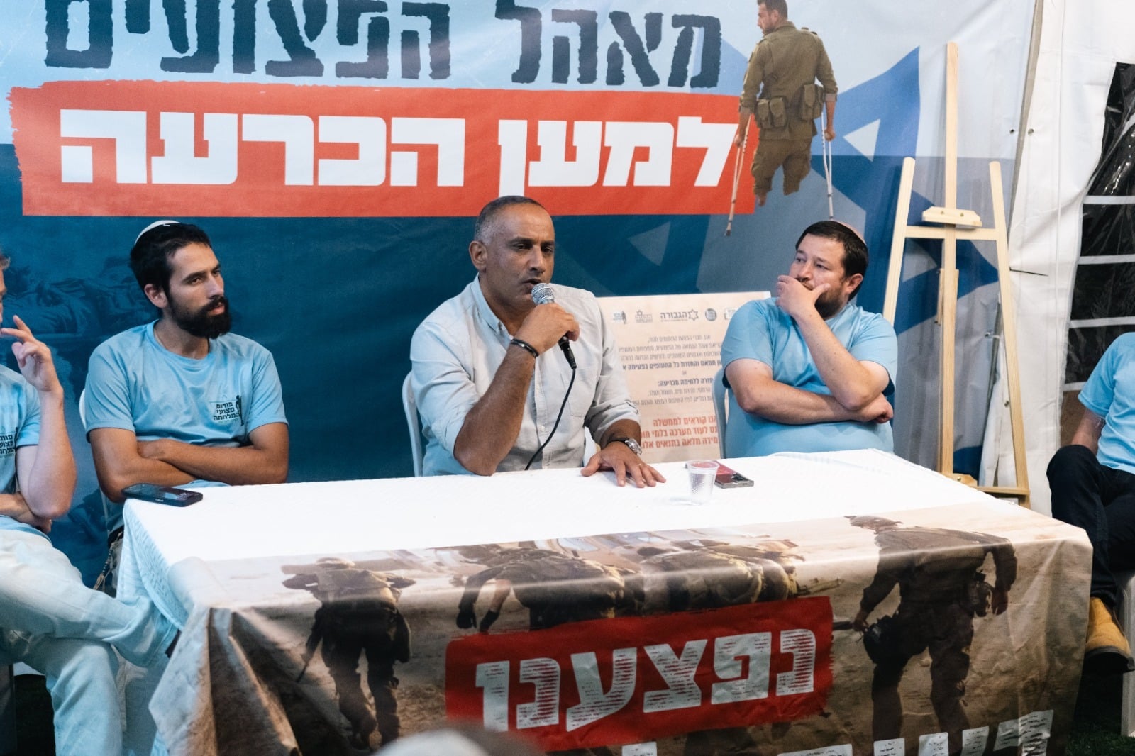במהלך היום השני של מאהל המחאה שהקימו פורום פצועי המלחמה מול הכנסת, התארחו במקום תא"ל (מיל') דדי שמחי וד"ר גדי טאוב. השניים שוחחו עם המשתתפים על מצב המלחמה, השקפתם על הצורך בהכרעת החמאס וההכרה בתרומת הפצועים.