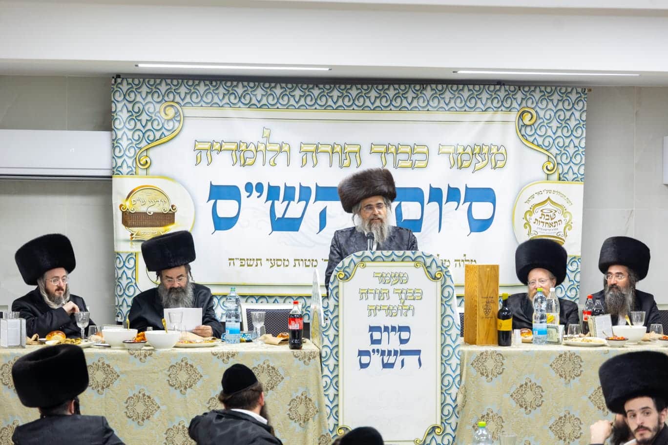 הגיע ובא הרגע המרגש, מעמד סיום הש"ס. אמת מה נהדר היה המעמד, כאשר כל אברך התכבד לסיים ברבים מסכת אחרת בש"ס. המנחה נעמד בהתרגשות והכריז "מסכת ברכות" ושם הרה"ג שמסיים מסכת ברכות, "מסכת שבת" ושם המסיים. בזה אחר זה נעמדו המסיימים, שמחה לאיש במענה פיו, וסיימו את מסכתות הש"ס, כאשר המנחה אינו עומד בקצב. יש מן המסיימים שפותחים את הגמרא וקוראים מתוכה את המאמר המסיים, יש שכבר סיימו את המסכת מספר פעמים ועתה עומדים ואומרים את סיומה בעל פה, סיום אחר סיום, כנהר שאינו פוסק וכמים שאין להם סוף.