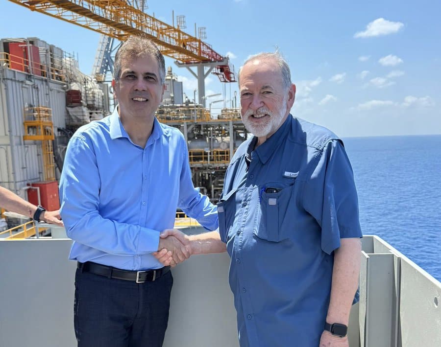 שר האנרגיה, אלי כהן, והשגריר האמריקאי, מייק האקבי, קיימו היום (שלישי) ביקור באסדת הגז לוויתן. הביקור נערך על רקע עסקת הענק לייצוא גז למצרים בשווי 35 מיליארד דולר.