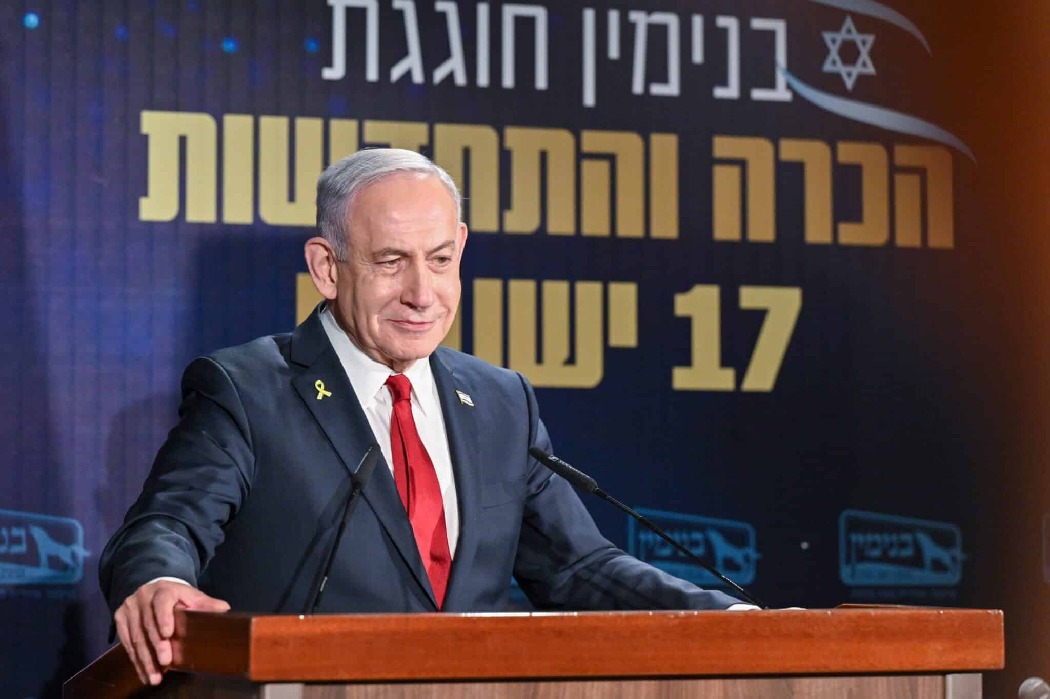בהתייחס למלחמה הנוכחית אמר נתניהו: "עוצמת הרוח הזאת היום נבחנת במלחמת שבע החזיתות, מלחמת התקומה, שבה אנחנו מביסים את אויבנו אחד-אחד. אנחנו בדרך לניצחון וכבר הושגו דברים גדולים, אבל יש מה להשלים. אנחנו באים עכשיו מישיבת קבינט. אני לא חושב שאני יכול להרחיב יותר מדי – אבל אני אגיד דבר אחד: זה התחיל בעזה וזה ייגמר בעזה. אנחנו לא נשאיר את המפלצות האלה שם, אנחנו נשחרר את כל חטופינו, אנחנו נדאג שעזה לא תהווה איום יותר על ישראל.