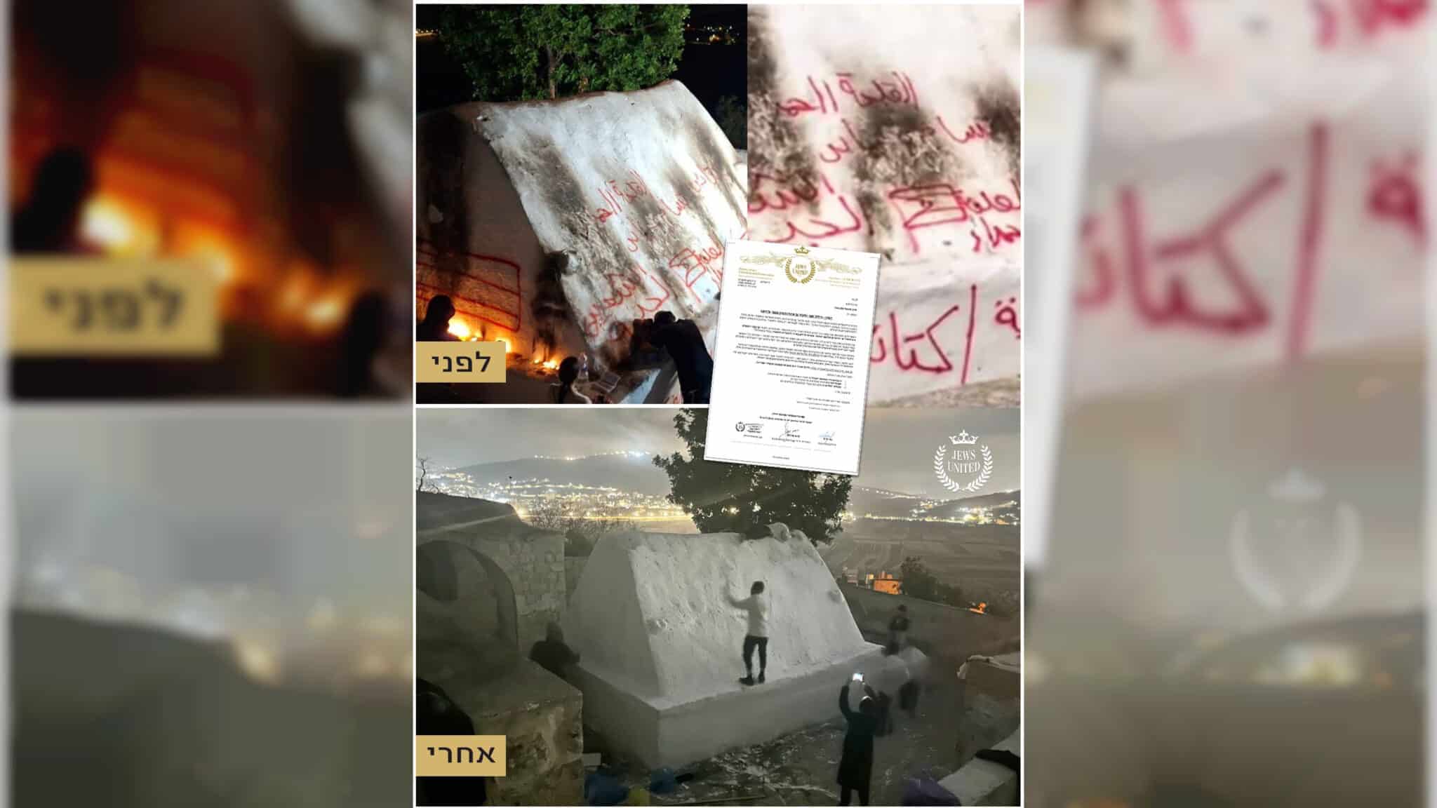 תיעוד מיוחד: בעקבות חילול קבר אלעזר בן אהרן הכהן בכפר עוורתא שבשומרון – שכלל כתובות גרפיטי אנטישמיות והשחתה של מתחם הקבר – נכנסו אמש בתיאום מיוחד מתפללים וצוות מתנדבים מארגון Jews United למבצע שיקום וצביעה.