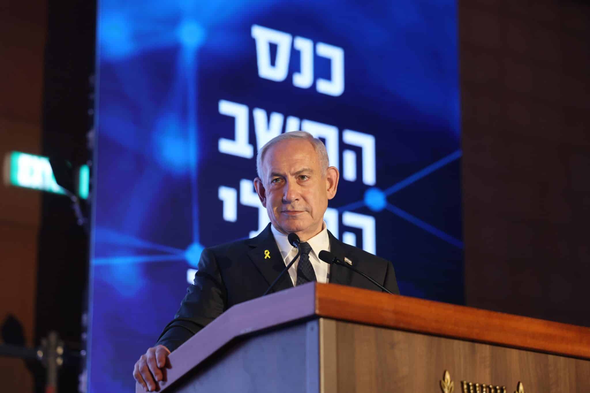 "לכל מנבאי השחורות בכלכלה, בסוף הבורסה בישראל החזקה בעולם. השקל התחזק, הגירעון התכווץ למרות המלחמה, והשקעות חוץ במו״פ הן הגבוהות בעולם אחרי ארה״ב" אמר נתניהו והוסיף "השקעה בישראל היא הדבר החכם לעשות. מה שנמשיך כן לעשות הוא להגדיל את ההשקעות בייצור נשק כדי לא להיות תלויים במנהיגים מערב-אירופיים חלשים שנכנעים למיעוטים המוסלמים הקיצוניים במדינותיהם, וכך בדיוק אנחנו עושים".