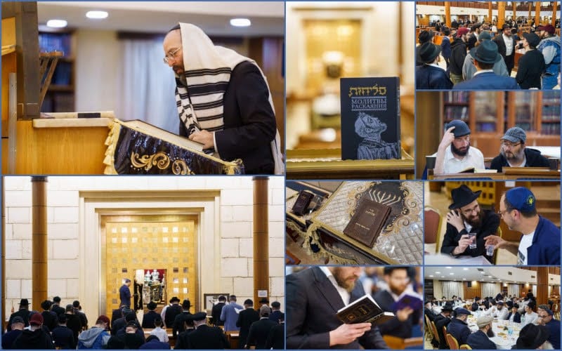 בהיכל בית הכנסת המרכזי "מארינה רושצ'ה", שגם לאחר נסיעתם של מאות מתפללים למסעות "שבת סליחות", ובמקביל לבתי חב"ד הפזורים בבירה שהיו גדושים ביהודים מהשכונות – נערכה על ידי הגבאים סעודת מלווה מלכה והתוועדות רבתי, ובהינתן האות בחצות הליל, ניגש שליח הציבור המחנך הרב אלעזר מרדכי קעניג לעמוד התפילה, ופצח בנעימות ב'אשרי יושבי' שסחף את מאות המתפללים לתפילה מרוממת, שהסתיימה בריקודים חסידים במשך שעה ארוכה.