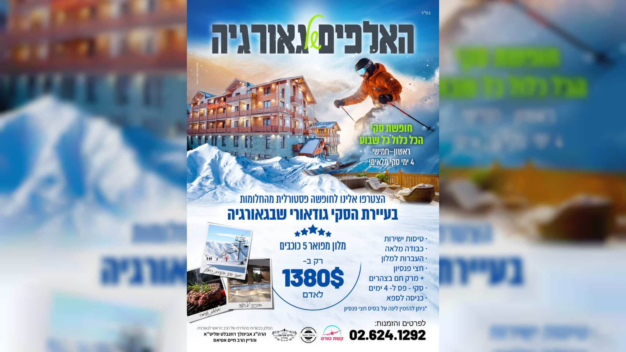 כששלג לבן עוטף את הרי הקווקז, חופשת הסקי הכשרה של “קשת טורס” בגודאורי מזמינה אתכם לנופש יוקרתי שבו כל פרט נבחר בקפידה – לינה, אוכל, תפילות וטיולים – הכל ברמה הגבוהה ביותר