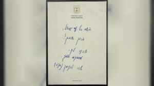על הפתק נכתב: ״בשם כל עם ישראל, ברוך שובך! חיכינו לך, מחבקים אותך. שרה ובנימין נתניהו״.