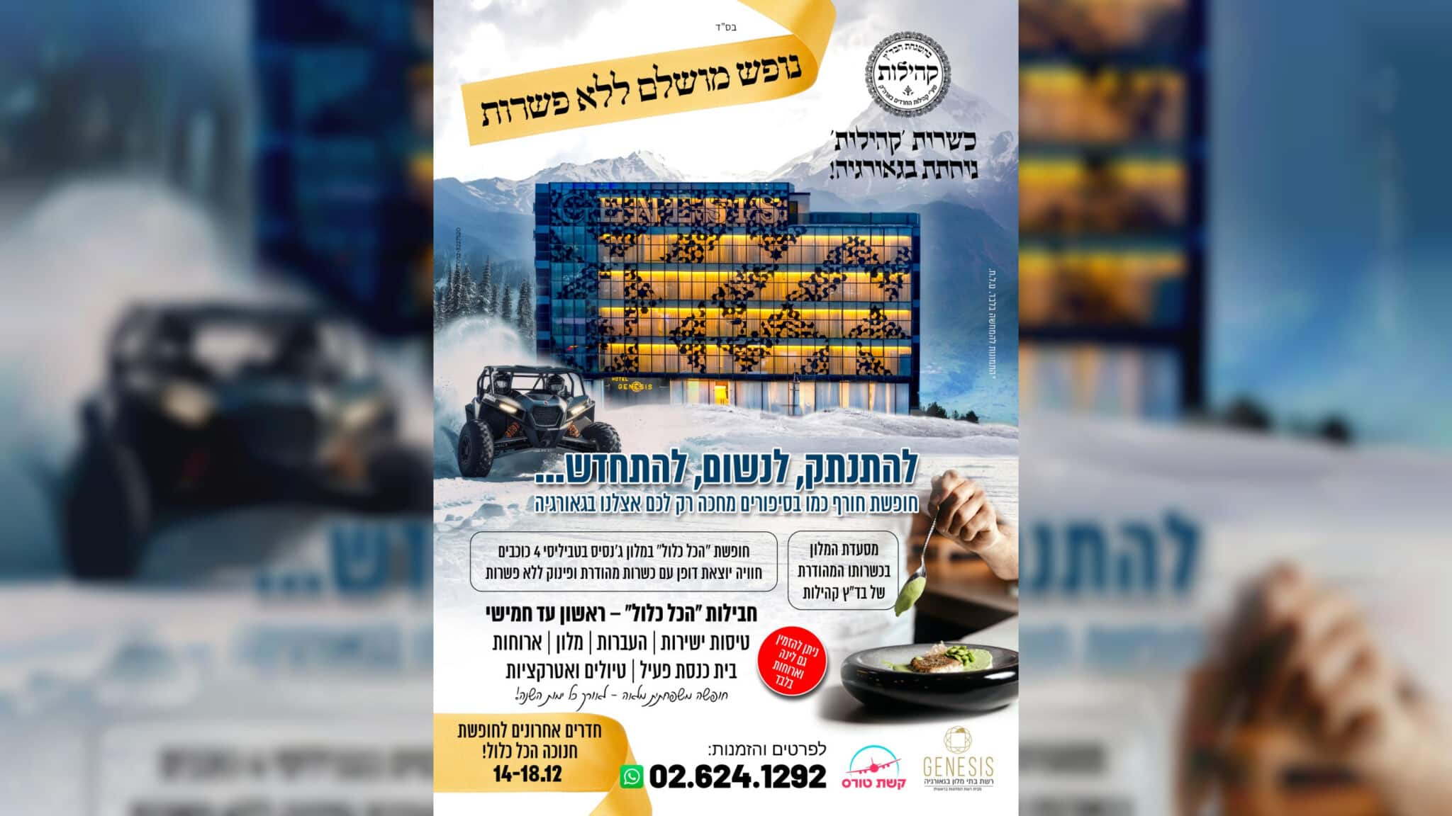- שלוש ארוחות ביום ממסעדת המלון, בכשרות מהודרת של בד"ץ קהילות