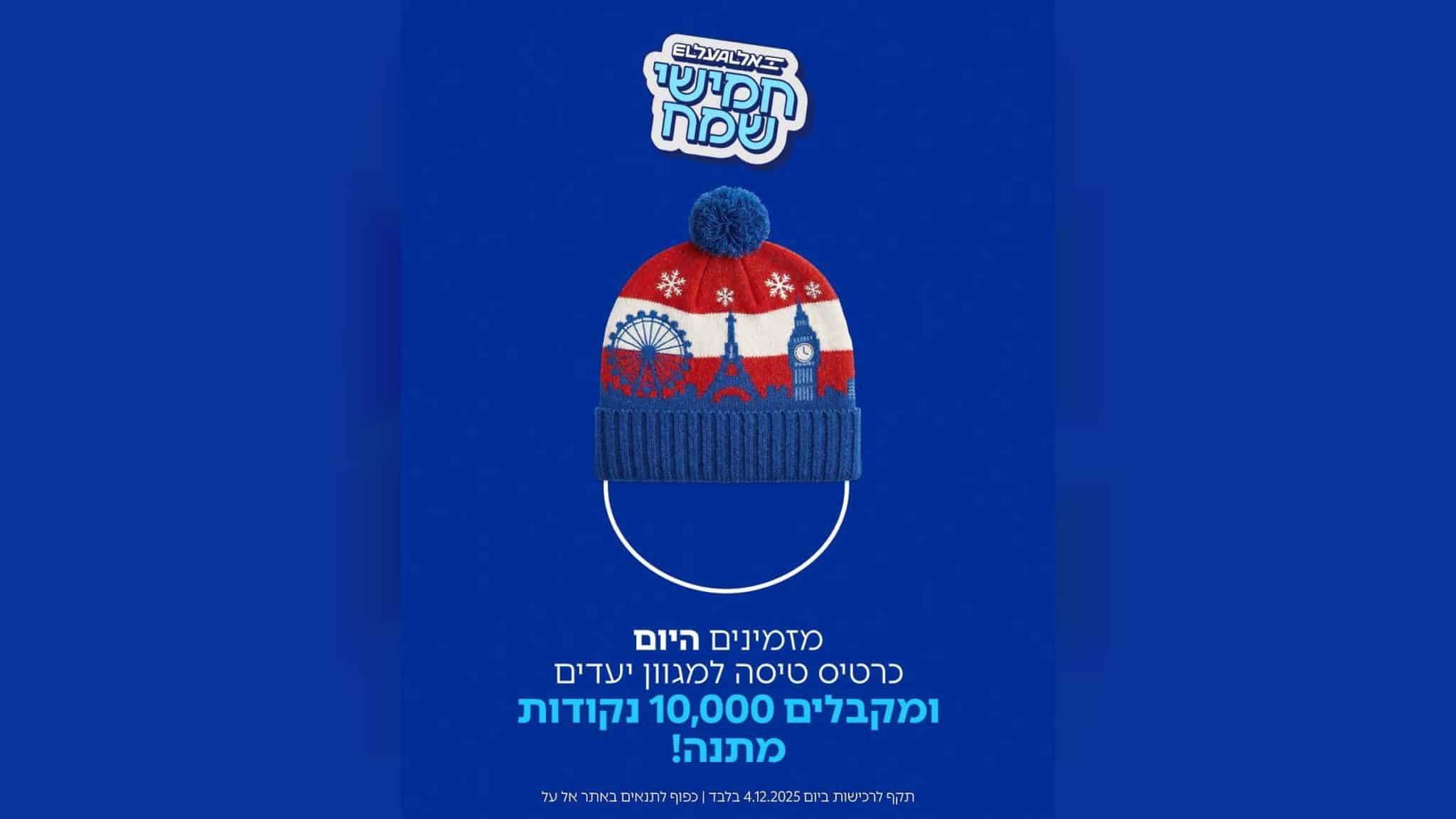 אל על ממשיכה את קמפיין ״חמישי שמח״ עם הטבה מיוחדת – נוסעים שירכשו מחר כרטיסי טיסה ליעדים נבחרים בחורף הקרוב, יקבלו 10,000 נקודות הנוסע המתמיד מתנה. ההטבה תקפה ללקוחות מועדון הנוסע המתמיד ולמצטרפים חדשים (ההצטרפות חינם).