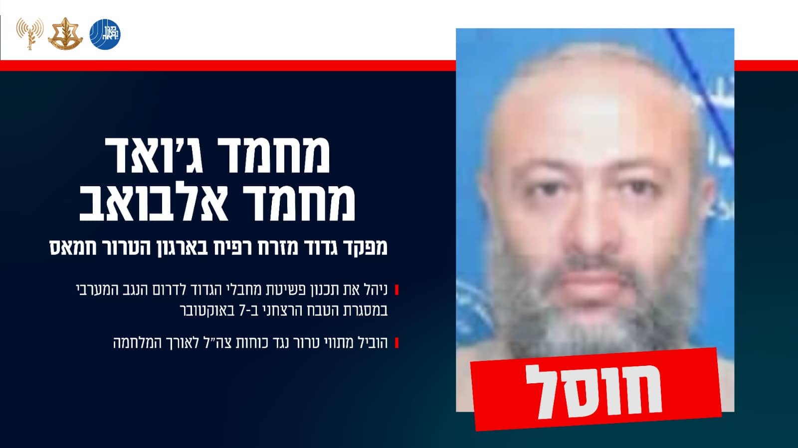 לאחר פיענוח מודיעיני, ניתן לאשר כי בין המחוסלים נמנים מפקד גדוד מזרח רפיח, מחמד ג'ואד מחמד אלבואב, וסגנו, אסמאעיל כנאן עבד אלחי אבו-לבדה. שני המחבלים הללו היו מעורבים באופן ישיר בתכנון פשיטת מחבלי הגדוד לדרום הנגב המערבי במסגרת הטבח הרצחני ב-7 באוקטובר. בנוסף, אלבואב הוביל מתווי טרור שונים נגד כוחות צה"ל לאורך המלחמה.