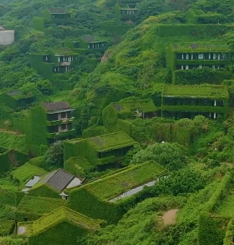 לפני שני עשורים עזבו התושבים את הכפר הסיני הזה, ומאז הטבע לקח פיקוד – קירות מכוסים בצמחייה עבותה, סמטאות שנעלמו בין עלים וירק אינסופי. התוצאה: נוף מרהיב שנראה כמו ציור חי.