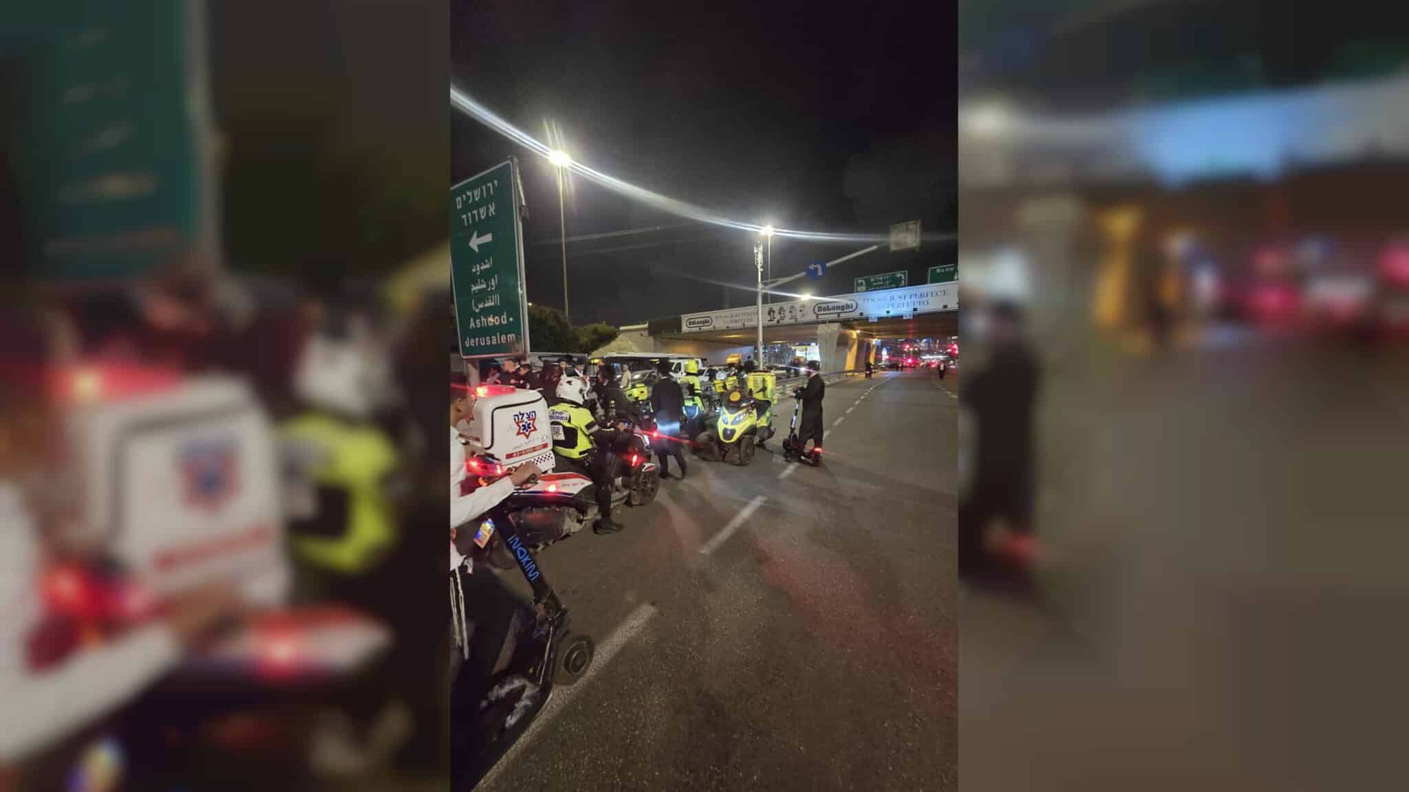 חובשי ההצלה יעקב טהרני ומנחם שטרן סיפרו: "כשהגענו לזירה, מצאנו נער בן 16 הסובל מחבלות בבטן, באגן ובגפיים התחתונות, לאחר שנפגע מרכב במהלך ההפגנה. הענקנו לו טיפול רפואי ראשוני שכלל קיבוע וחבישות, והוא פונה במצב בינוני להמשך טיפול בחדר הטראומה בבית החולים שניידר בפתח תקווה".
