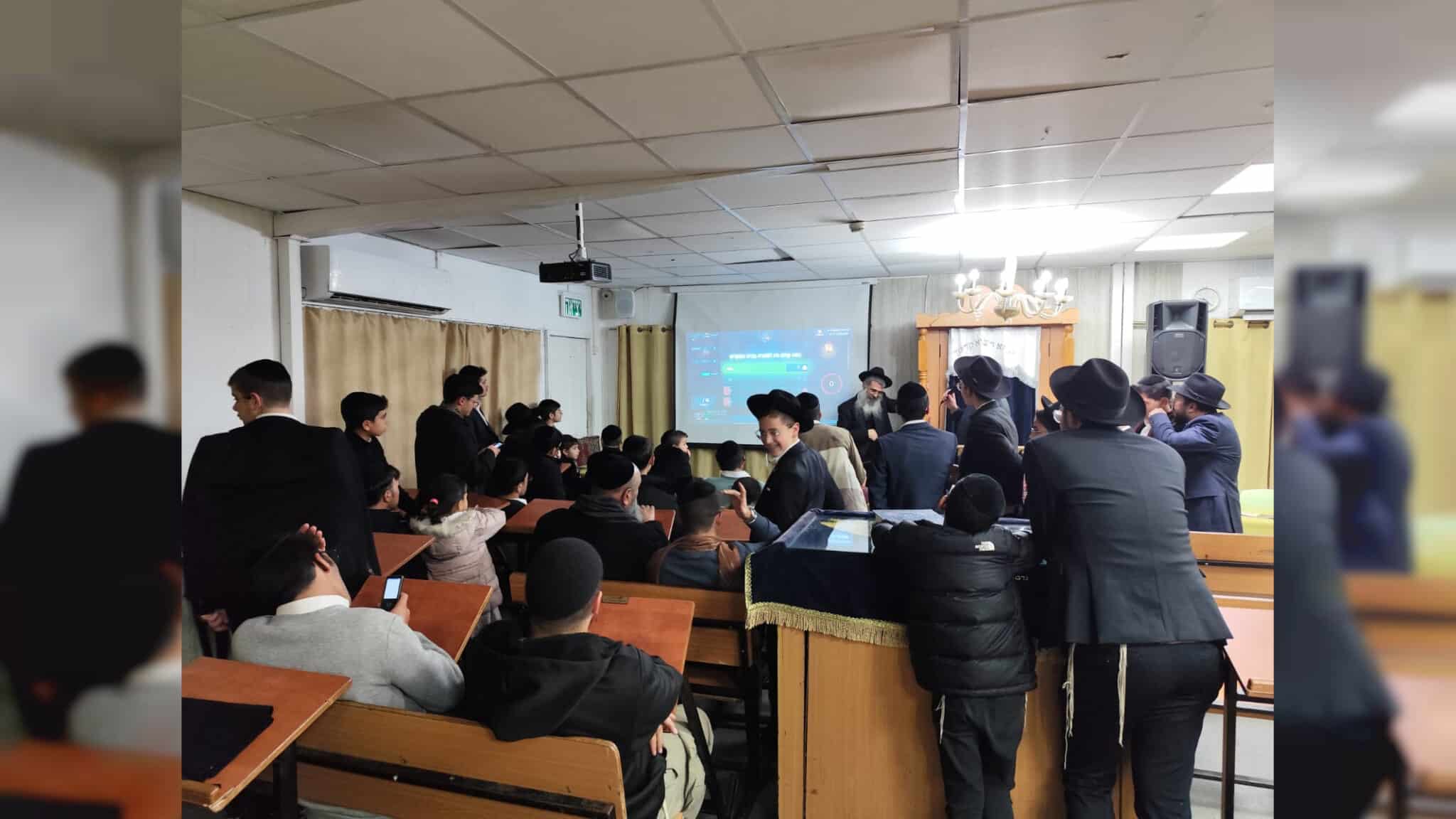 בהיכל ישיבת דרך תורה שהוקמה ע"י הגר"י זכריה זצ"ל וממוקמת בשכונת רמת שלמה בירושלים, נערכה מסיבת חנוכה בהשתתפות רבנים, והורי התלמידים.