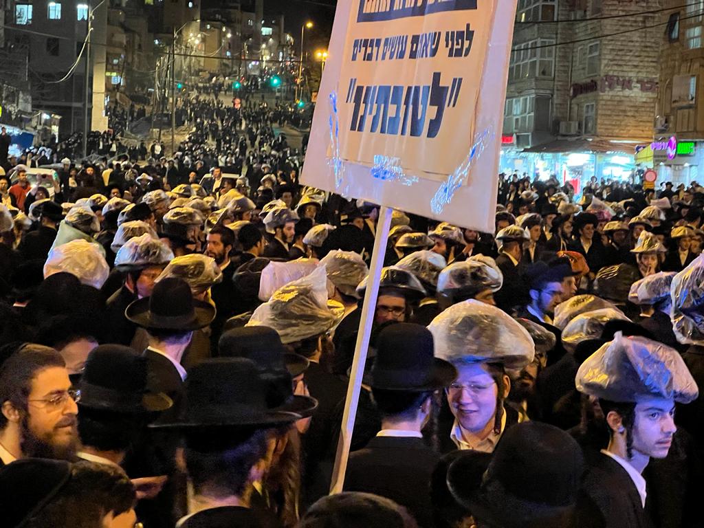 מהפלג הירושלמי נמסר: "עקב מעצרם הנפשע של תלמידי ישיבות בעוון לימוד תורה, וניסיונות המעצר של תלמידי ישיבות בבתיהם, יצאו הערב מאות אברכים ותלמידי ישיבות למחות. היות ומשטרת ישראל לא איפשרה להמוני המפגינים להגיע לביתו, ירדו המפגינים בכניסות לעיר אשקלון וכעת העיר נצורה יחד עמו! אין יוצא ואין בא! כמחאה רבתית נגד הפשע הנורא של רדיפת לומדי התורה בארץ ישראל".
