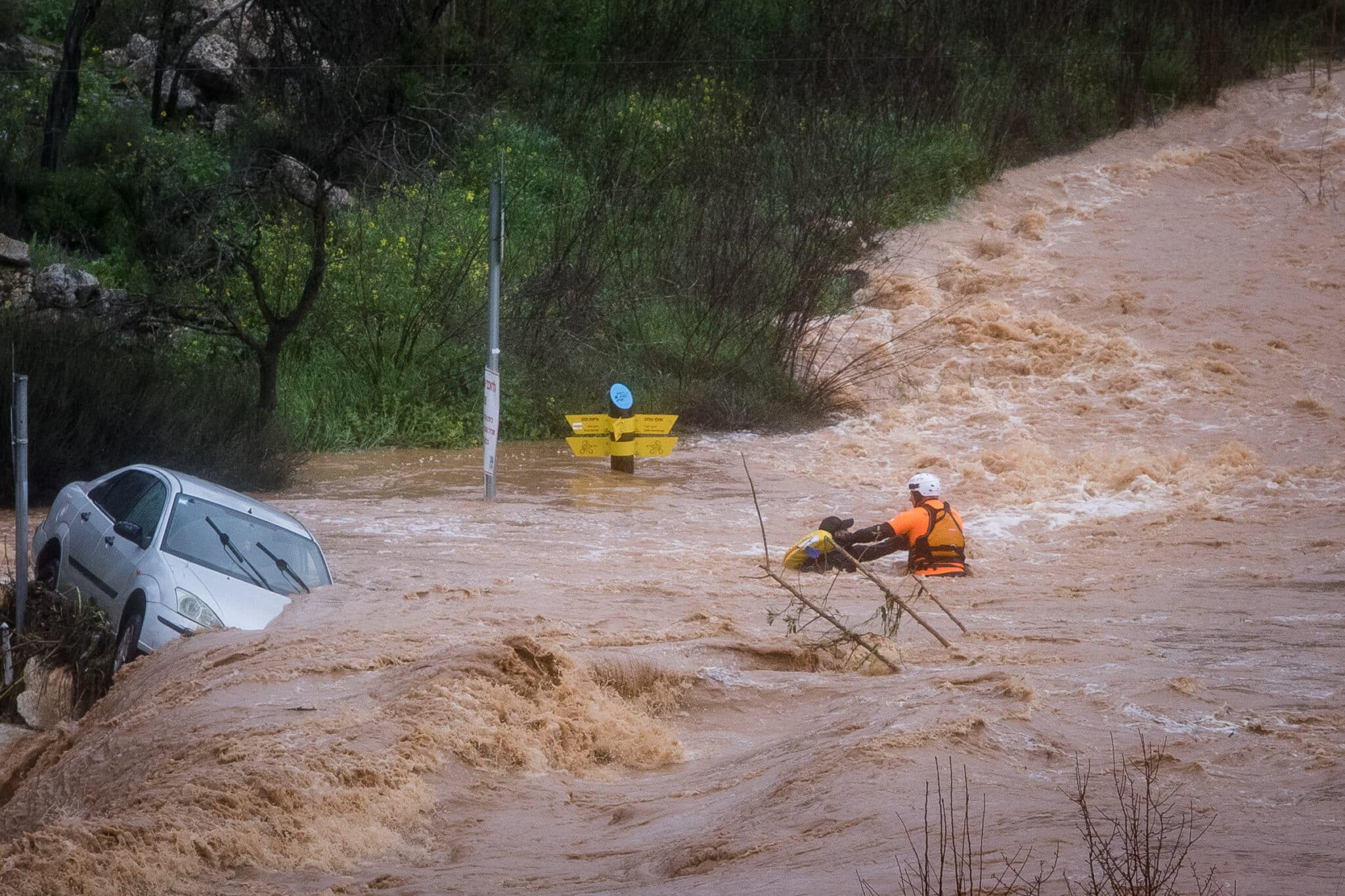לוחמי האש וצוותי החילוץ של כבאות והצלה לישראל פועלים בכוחות מתוגברים תחת גשמים עזים ושיטפונות באפיקי הנחלים, כאשר באחד האירועים, ארבעה צוותי כיבוי והצלה מתחנת עפולה הוזעקו לחילוץ לכודים מרכב שטח ששקע בנחל סמוך לצומת מגידו. הלכודים, שמצאו עצמם במצור בלב המים הזורמים והבוץ, נאלצו לטפס על גג הרכב עד להגעת כוחות ההצלה שהשתמשו בסולמות ייעודיים כדי להשיבם לקרקע יציבה בבטחה.