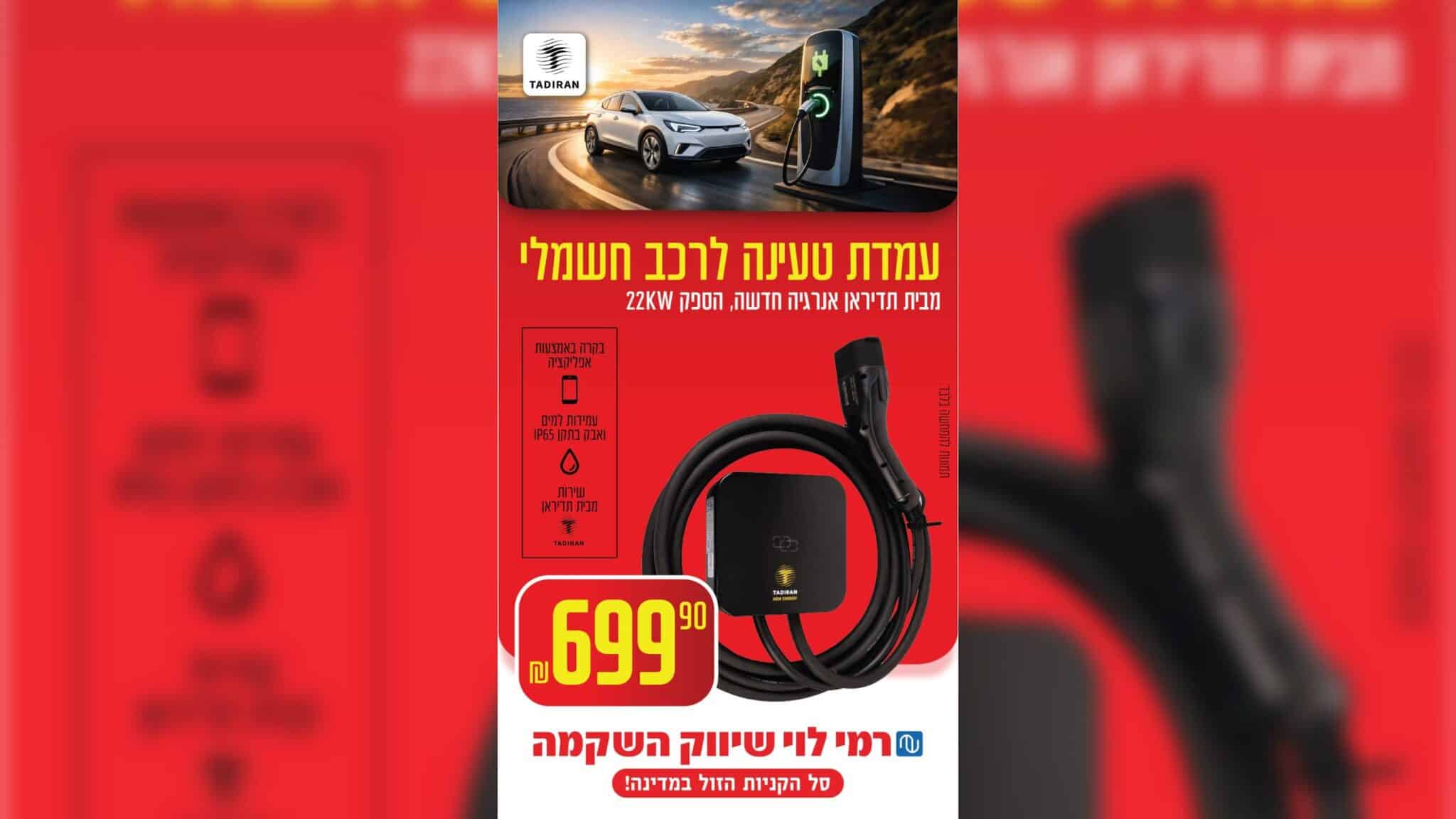 בזמן שרשתות רבות מתמקדות במבצעי חשמל נקודתיים, רמי לוי מציע פתרון אחר: עמדת טעינה ביתית לרכב חשמלי, מוצר שבדרך כלל נחשב יקר ומשמעותי, במחיר שובר שוק של 699.90 ש”ח בלבד.
